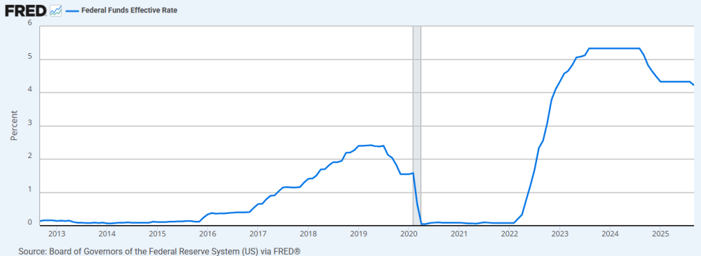 Před námi je velice důležitý týden, který z velké části rozhodne o tom kam se trhy chtějí dále vydat do konce roku. Ve středu se americká centrální banka (Fed) pravděpodobně rozhodne znovu snížit klíčovou úrokovou sazbu USA o dalších 0,25 % na 4,00 %. V souvislosti s tím šéf Fedu – Jerome Powell během středeční tiskové konference poskytne i výhled na budoucí vývoj monetární politiky. Právě očekávání pokračujícího uvolňování monetární politiky je jedním z velkých faktorů, který nyní na trzích udržuje optimismus investorů.